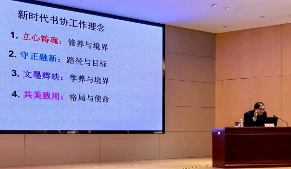 啟動儀式后舉辦書法公益大講堂。中國書協(xié)分黨組書記馬勇明以《走進書法的世界》為題,為在場師生與書法愛好者帶來了一場深入淺出的精彩講座。他從“究書之本,品書之美,好書之益,習書之徑”四個方面分享了四十多年研習書法的體悟。他談到,書法,是中華文明獨特的藝術形式,承載著中華民族的精神密碼與審美理想,熔鑄著中國人的生命哲思與文化意蘊,不僅有著重要的藝術價值,還承擔著深沉的文化使命。書法是中國人的精神滋養(yǎng),可以養(yǎng)浩然之氣,積淵博之才,得天地靈性,納萬物菁華,創(chuàng)物我同心的大境。新時代書協(xié)工作應秉持“立心鑄魂,守正融新,文墨輝映,共美致用”的理念,展現(xiàn)書協(xié)“傳承文化,服務時代,滋養(yǎng)人心”的擔當,推動書法藝術在新時代煥發(fā)新光彩。