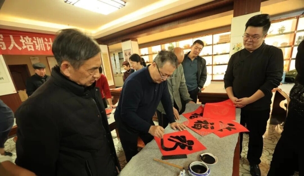 鄉(xiāng)村春聯(lián)書寫人培訓(xùn)在曲阜市圣賢高級中學(xué)同期進(jìn)行,程志宏為曲阜當(dāng)?shù)剡x拔的20名鄉(xiāng)村春聯(lián)書寫人及部分學(xué)生開展專題培訓(xùn)。旨在培養(yǎng)一批扎根鄉(xiāng)村、服務(wù)群眾的基層書法骨干,用更具文化內(nèi)涵和藝術(shù)美感的春聯(lián)裝點千家萬戶,助力鄉(xiāng)村文化振興。
