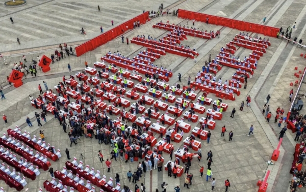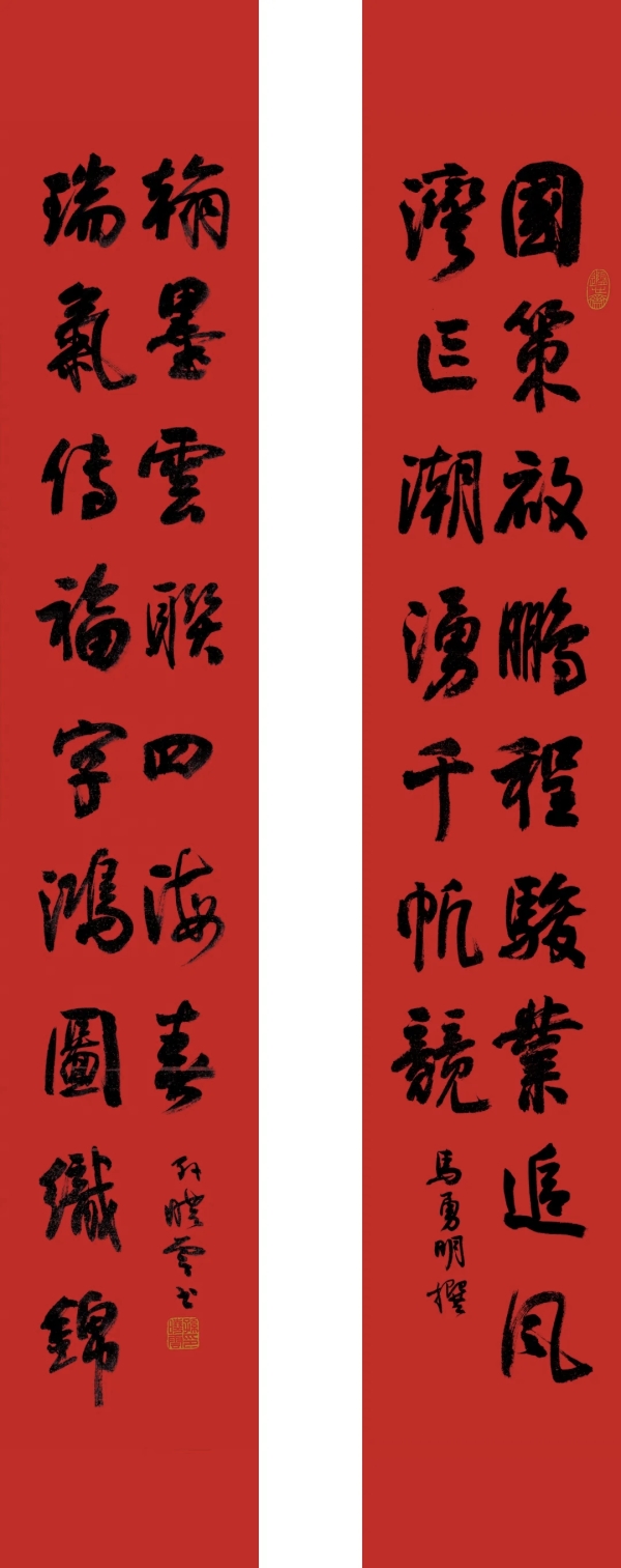活動(dòng)現(xiàn)場(chǎng),巨幅紅綢對(duì)聯(lián)高懸而立,聯(lián)文“國(guó)策啟鵬程,駿業(yè)追風(fēng),灣區(qū)潮涌千帆競(jìng);瑞氣傳福字,鴻圖織錦,翰墨云聯(lián)四海春”由馬勇明先生撰句、孫曉云先生揮毫?xí)鴮懀P墨間融匯時(shí)代氣象與傳統(tǒng)文脈。與會(huì)人員共同組成氣勢(shì)恢宏的“旺”字陣型,既象征中華文化生生不息,也寄寓肇慶發(fā)展與國(guó)家愿景同頻共振的美好愿景。