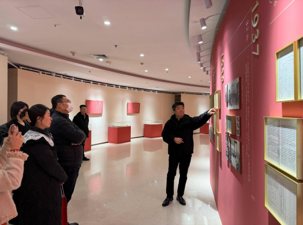 12月2日,中國書協(xié)青年理論學(xué)習(xí)小組與中國書法出版?zhèn)髅接邢挢?zé)任公司青年理論學(xué)習(xí)小組開展聯(lián)學(xué)活動,共同學(xué)習(xí)參觀由中國文聯(lián)、中國書協(xié)、江西省文聯(lián)主辦的“千秋翰墨一舒同——紀念舒同誕辰120周年文獻展”?;顒犹匮哒谷酥弧⒅袊穆?lián)書法藝術(shù)中心大型活動處李寧同志為大家進行詳細講解。